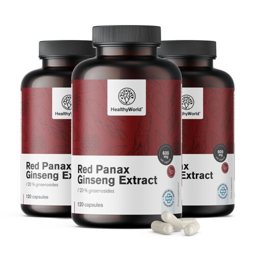 Sada obsahuje: 3x Red Panax Ginseng - výťažok červeného ženšenu 600 mg, 120 kapsúl (spolu 360 kapsúl).
